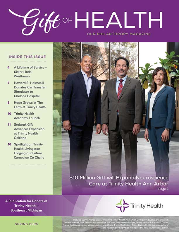 From the latest advanced diagnostics and treatments to care for the poor and underserved, and from groundbreaking research to compassionate, innovative programs for health and wellness, Trinity Health is raising the bar of health care every day for every patient.